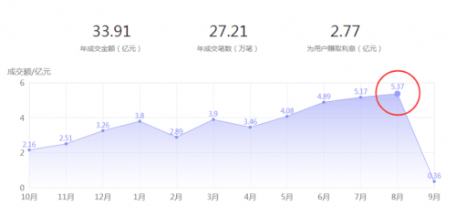 受密集监管规定的影响,一些实力欠佳的小平台因无法满足监管要求而选择清算资金后良性退出,一部分优质的平台则相应迎来规范监管的要求,力求实现合规。广信贷平台在排查自身及积极拥抱监管政策的同时,累计交易金额也在逐步攀升,8月再创新高,交易额达到5.37亿,为努力走向合规的平台树立了典范。